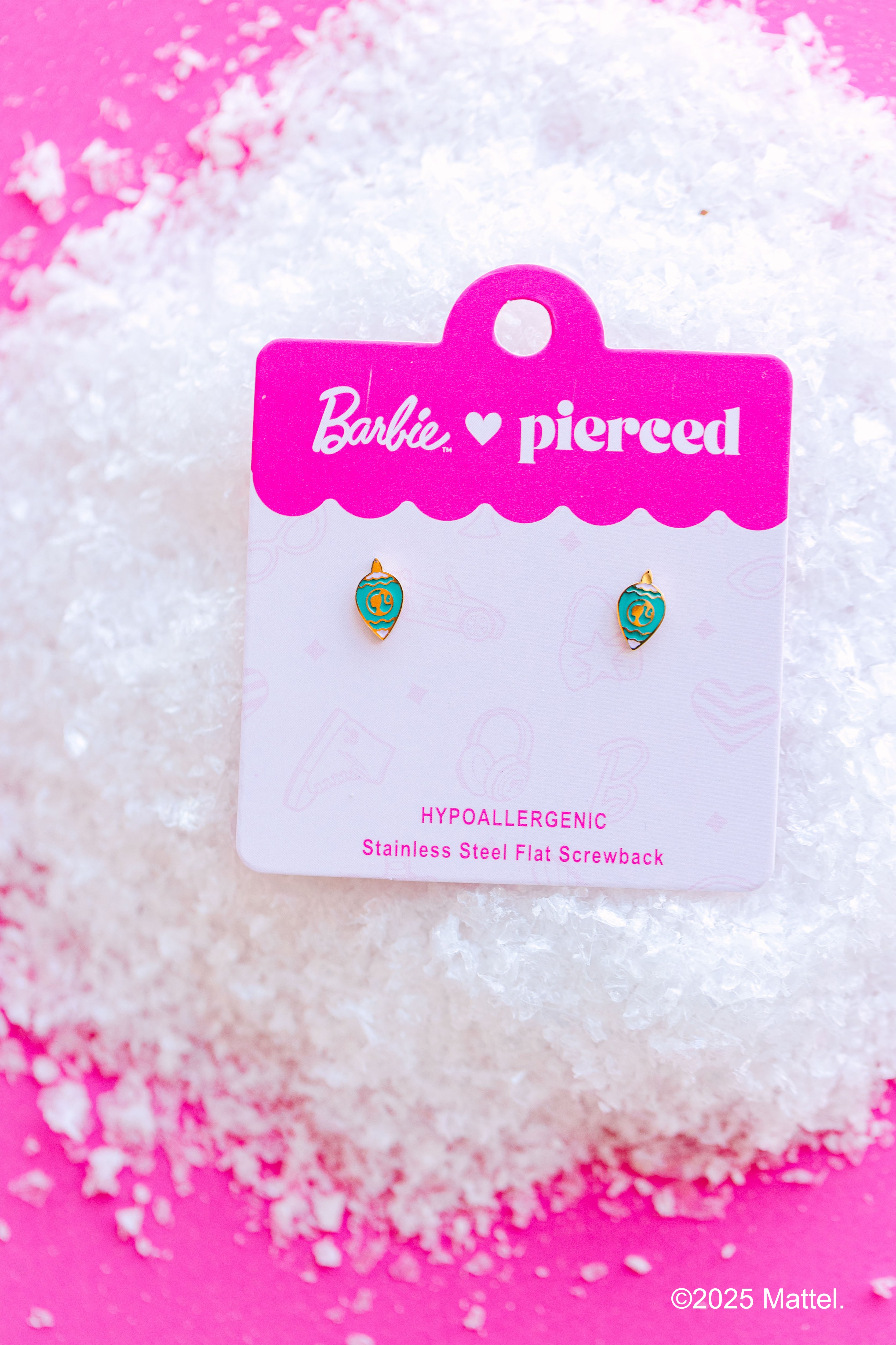 Celebrate the season with the Barbie x Pierced Co, where timeless Barbie style meets Pierced Co comfort. Designed for girls who love to express themselves, these earrings are festive, durable, and perfect for everyday wear—no irritation, no limits.